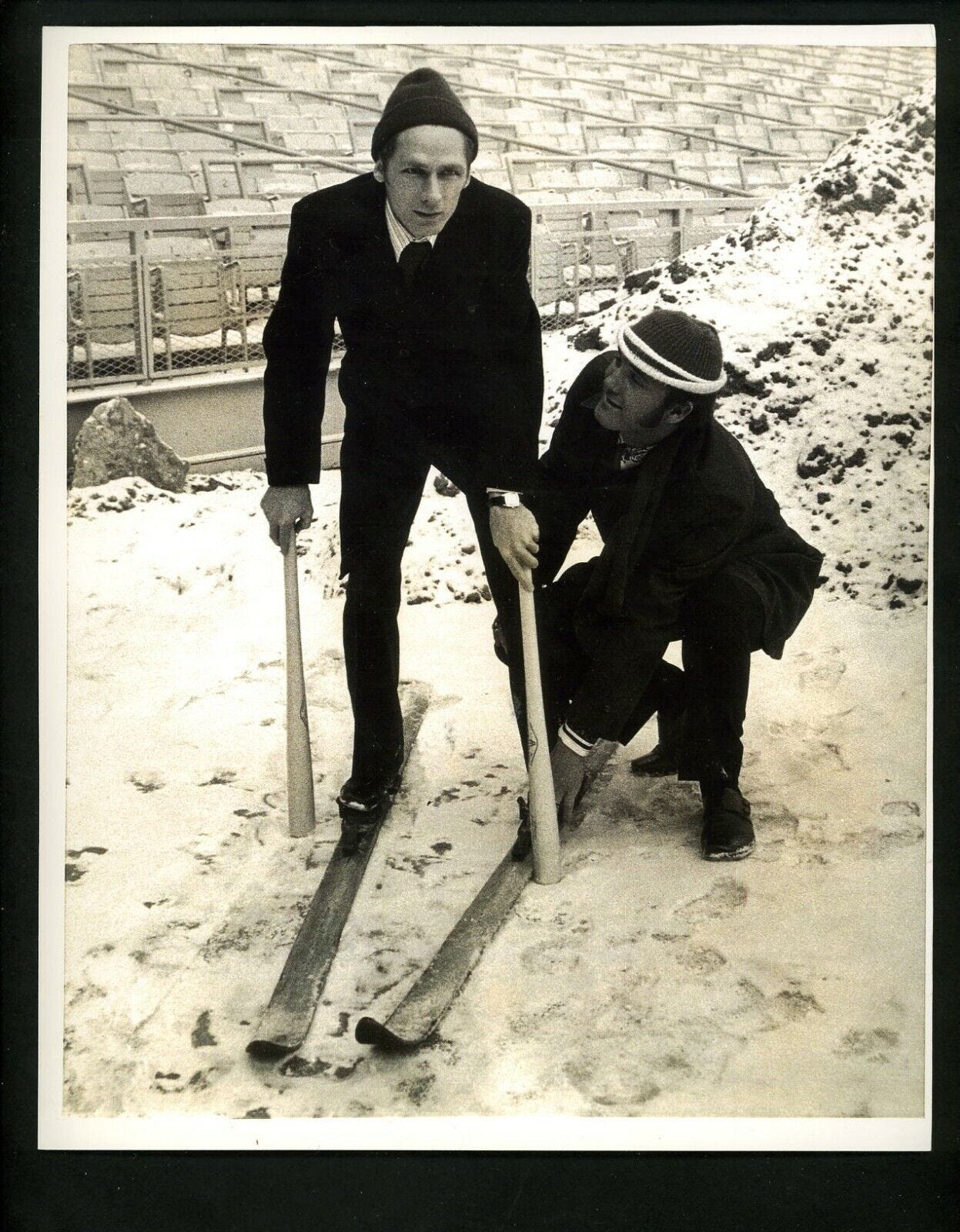 Bud Harrelson and Tug McGraw prepare to descend into the lodge at Mt. Shea to sign their 1971 contracts.